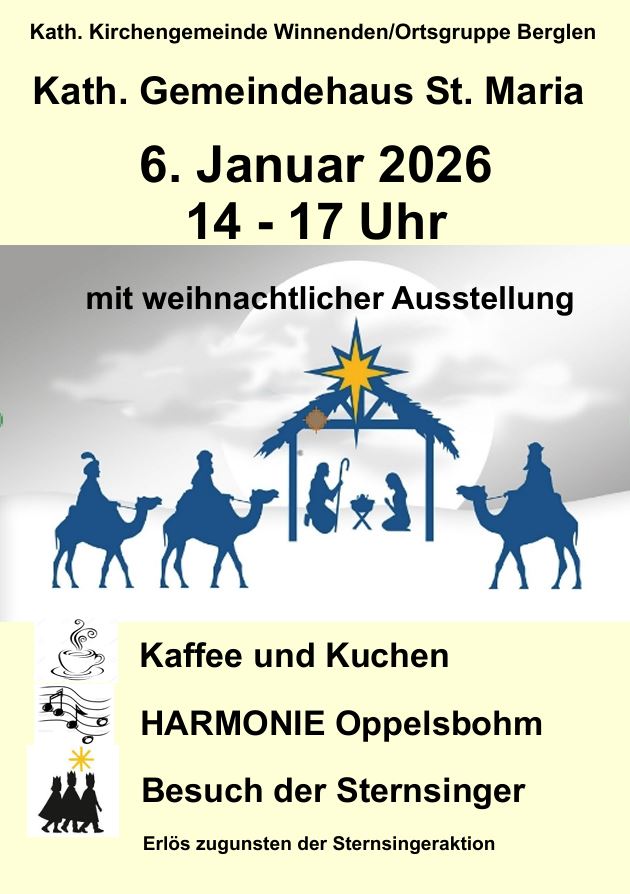 Bei Kaffee und Kuchen erwartet Sie ein buntes Programm: die Sternsinger haben ihren Besuch angesagt, die Harmonie Oppelsbohm singt auch mit Ihnen Weihnachtslieder und eine weihnachtliche Ausstellung runden das Programm ab. Der Reinerlös ist zugunsten der Sternsingeraktion.